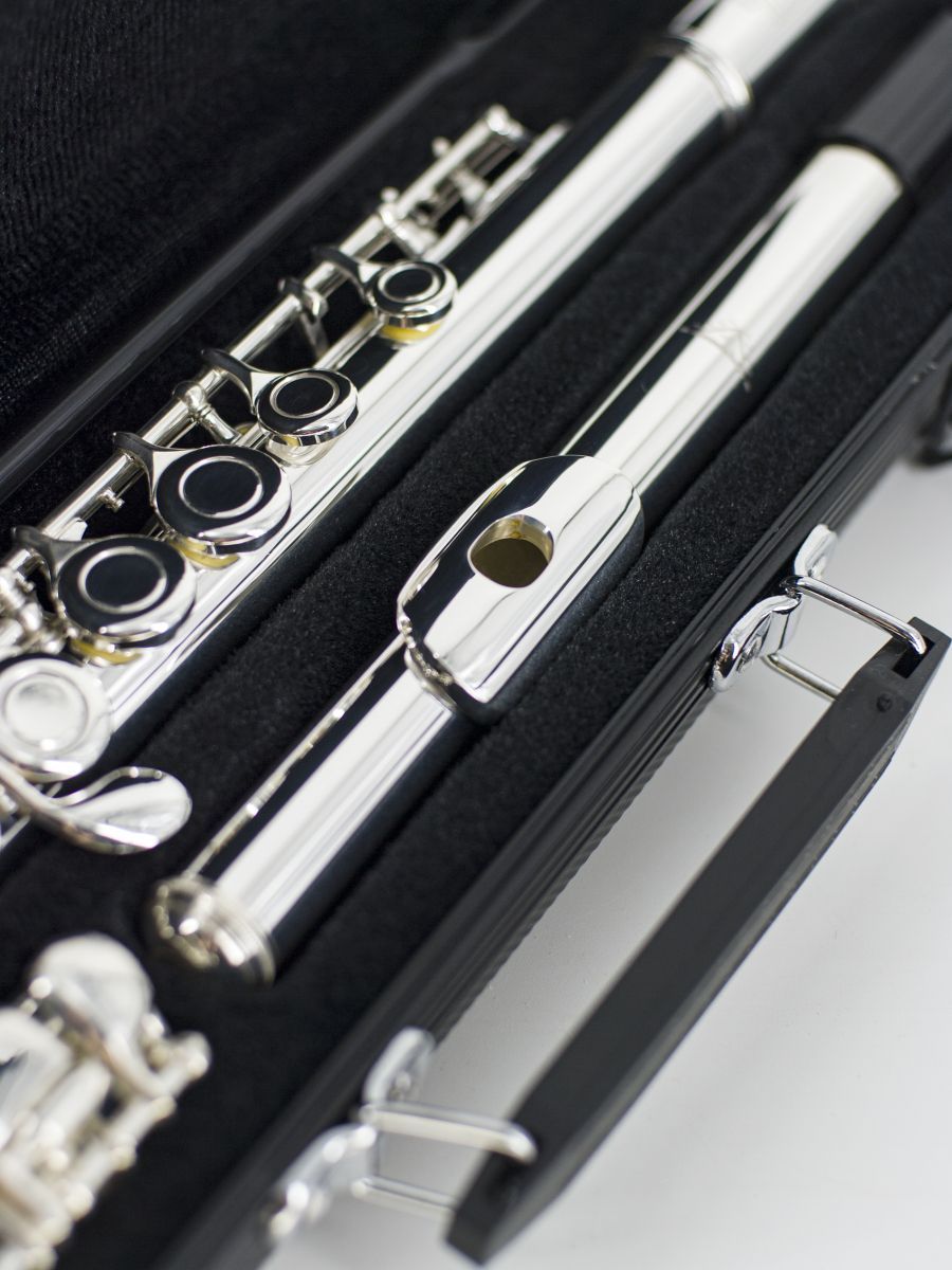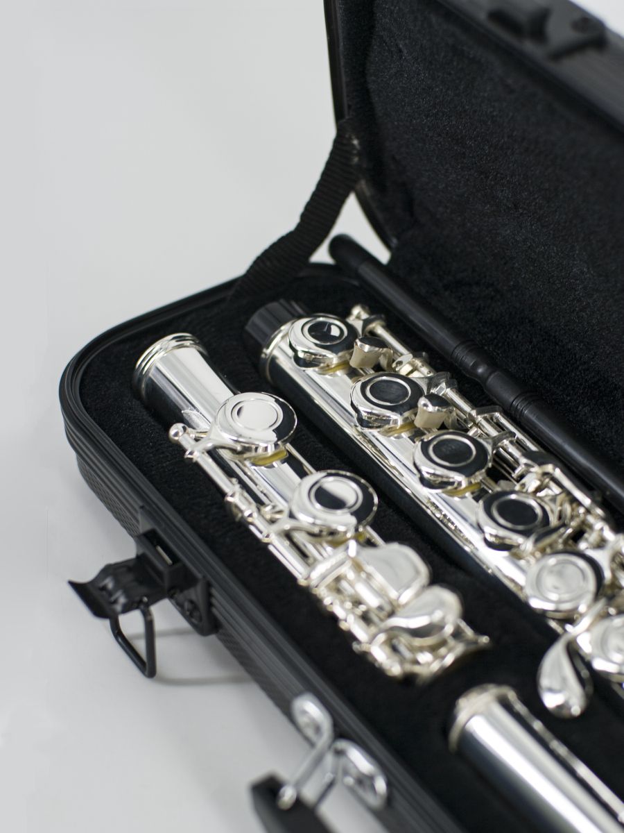 Флейта AF-1038 – прекрасный выбор для начинающих музыкантов, студентов и «бюджетных» оркестров. Качество по доступной цене! Закрытые клапаны, не в линию, Е-механика, футляр. (Предыдущая модель FL-6238S)