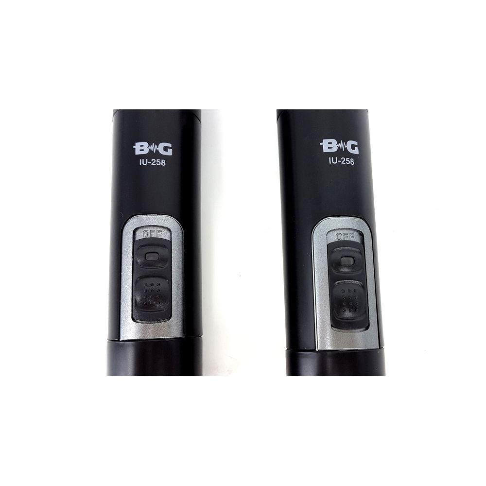 BG IU-258 Радиосистема вокальная, UHF 600-870MHz, фиксированная частота, Led дисплей, 2 ручных микрофона