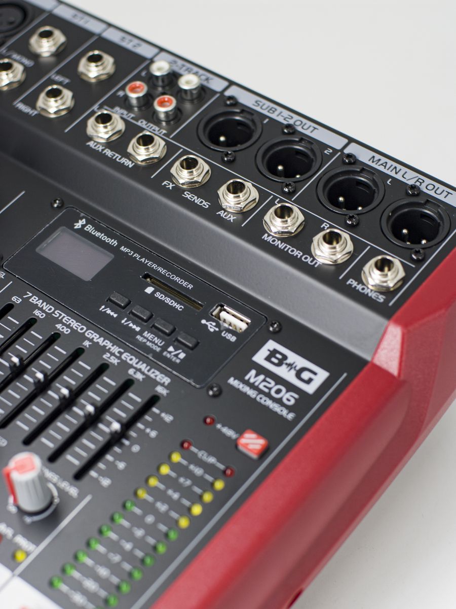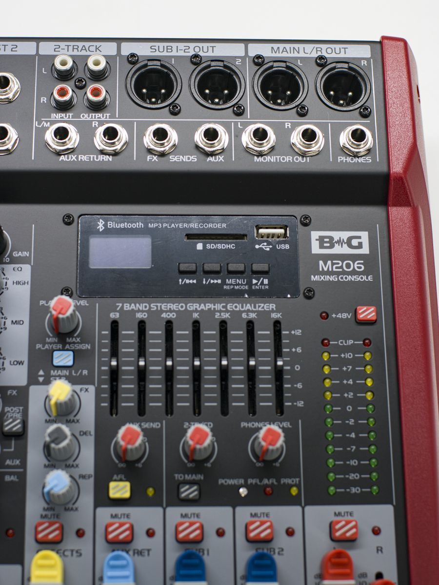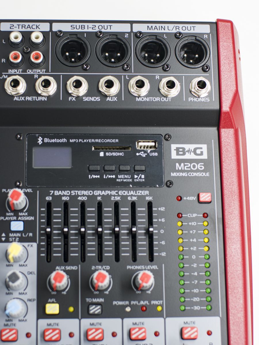 BG M206 Пульт микшерный, 4 моно, 2 стерео, USB/SD MP3 плеер, процессор эффектов, 7 полосный эквалайзер, 2 подгруппы, фантомное питание