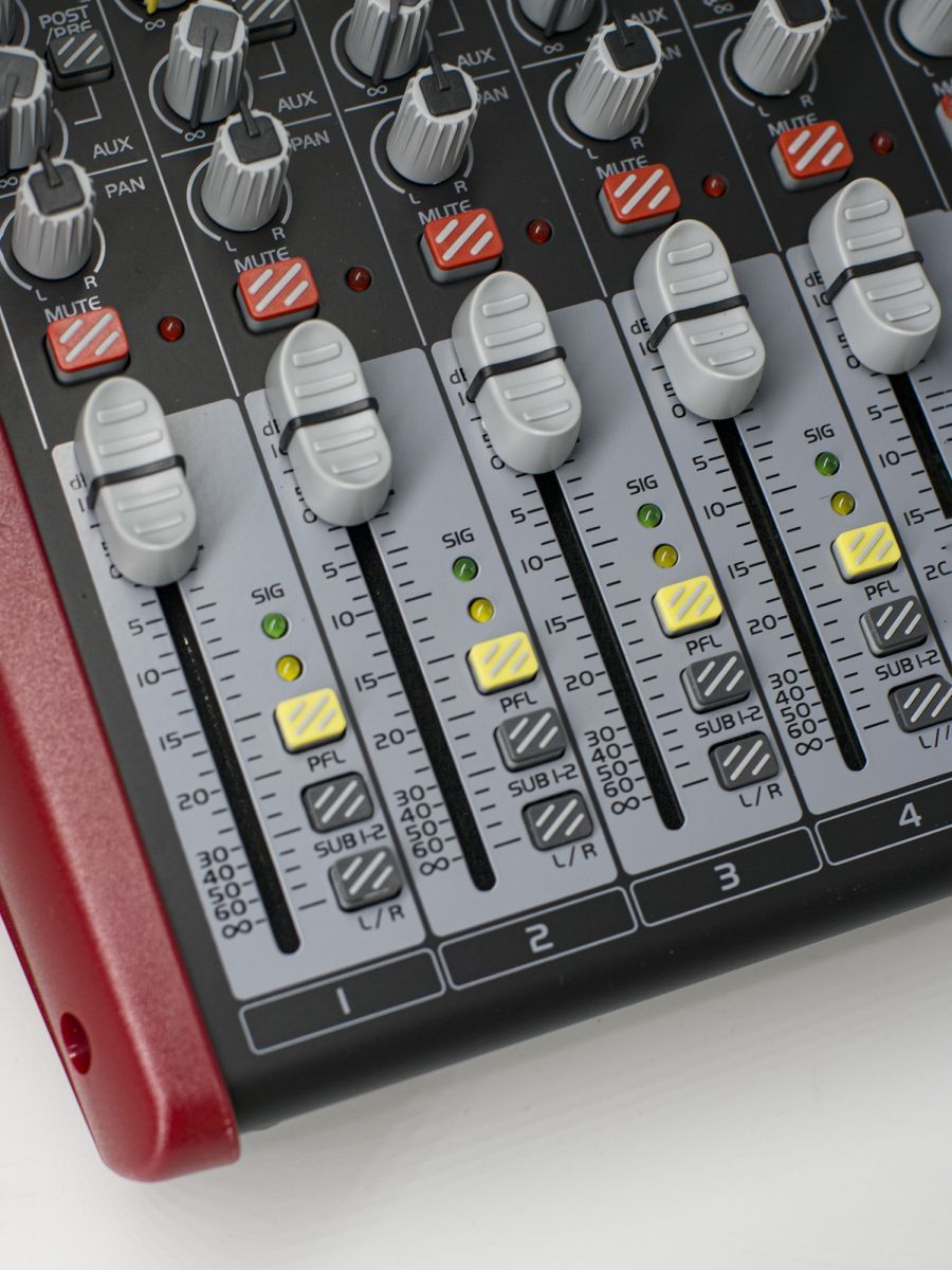 BG M206 – это аналоговая микшерная консоль. Модель спроектирована для профессионального применения. BG – это качественное и доступное по цене профессиональное звуковое и трансляционное оборудование. Продукция бренда BG станет идеальным вариантом для баров, ресторанов и конференц-залов. Строжайший контроль технологического процесса обеспечивает высококачественное звучание и безупречную надежность оборудования. Особенности модели: – 6 каналов – LR main mix – 2 AUX – 2 group стереофонических входа – 3-полосный эквалайзер – измерители Channel и Master – фейдеры с защитой от пыли – пиковый индикатор в каждом канале – балансные XLR выходы с электропитанием +26 dBu – 7-полосный графический эквалайзер – процессор эффектов – функция записи – металлические джеки, позолоченные разъемы XLR – внешний адаптер питания – фантомное питание Микшерный пульт обладает компактным дизайном и имеет две прочные боковые ручки. Панель управления может наклоняться на 10 градусов в целях обеспечения наилучшего обзора, что является большим преимуществом. BG M206 оснащен 3-полосным эквалайзером и процессором DSP-эффектов. Консоль имеет слот для карты SD и порт USB. Главной особенностью модели является наличие встроенного MP3-плеера, который может записывать аудиосигнал, исходящий с канала main, и сохранять его в текущий блок памяти в формате WAV. Микшерный пульт BG M206 станет прекрасным вариантом для аудиостудий, конференц-залов и выездных инсталляций.