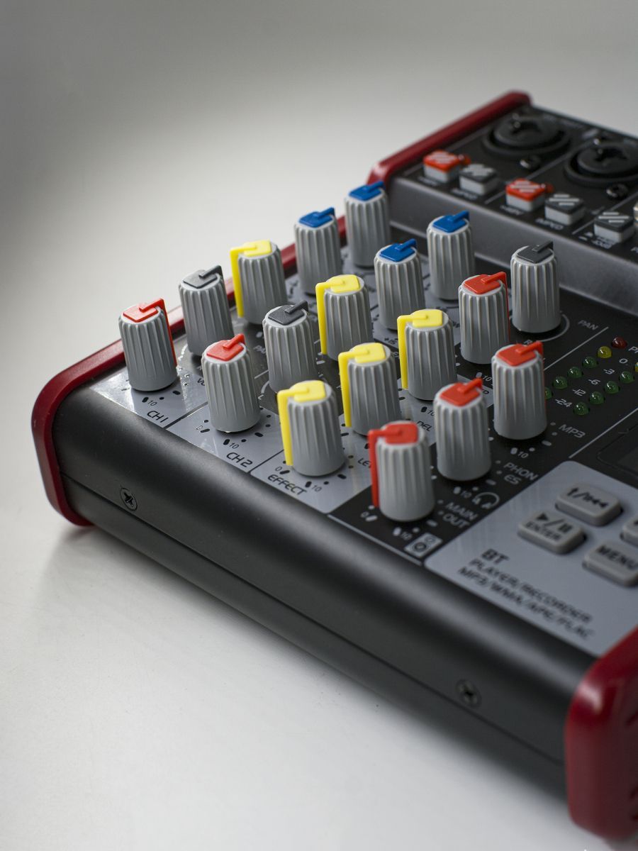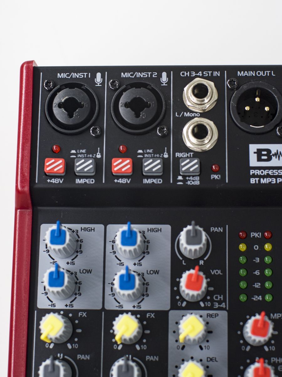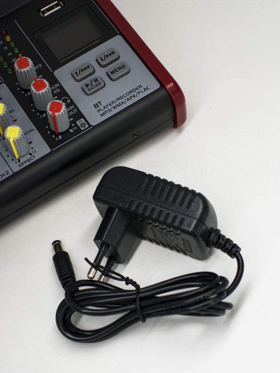 Пульт микшерный, 6 моно, 1 стерео, процессор эффектов, USB MP3, BT, 2 полосный эквалайзер