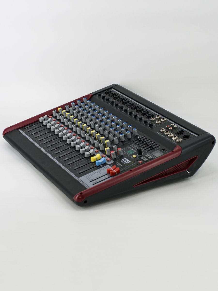 BG T122-FX представляет собой компактный 14-канальный микшерный пульт для живых концертов и студийного применения.   BG – это качественное и доступное по цене профессиональное звуковое и трансляционное оборудование. Продукция бренда BG станет идеальным вариантом для баров, ресторанов и конференц-залов. Строжайший контроль технологического процесса обеспечивает высококачественное звучание и безупречную надежность оборудования. Особенности модели: – 14 каналов – LR основной микс – 2 Aux отправления – запись – 2 группы входа стереоканала – 60-миллиметровые пыленепроницаемые фейдеры – 2-трековый мониторинг и воспроизведение в LR – наушники и выходы локального монитора – выделенные стерео, высоковольтные мониторы – сбалансированные XLR-выходы с возможностью привода + 26 дБн – сверхмалошумящий микшерный усилитель – 7-полосный графический эквалайзер – 16-режимный процессор с регулируемыми параметрами DSP – металлические гнезда, позолоченные XLR, герметичные потенциометры и переключатели – встроенный источник питания SMPS Микшерный пульт BG T122-FX обеспечивает высочайшую надежность и наилучшие звуковые характеристики.