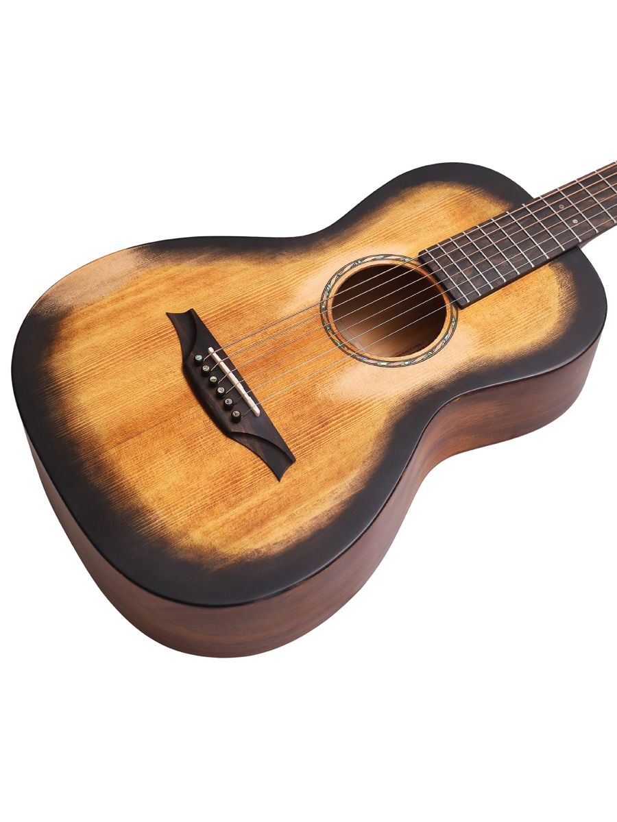 Bromo BAR6H hs Гитара акустическая Parlor, верхняя дека: цельная ель, нижняя дека и обечайка: цельный махагони, гриф: махагони с двумя эбеновыми вставками, накладка грифа: макассарский эбен, двухсторонний анкер, колки: винтажные "Bromo" античная латунь, матовая, в чехле