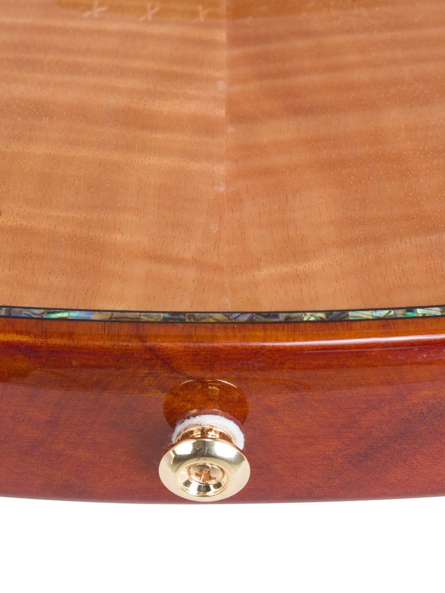 Bromo BEN2C — полуакустическая гитара для музыкантов, ценящих универсальность, глубину звучания и премиальное качество. Модель сочетает традиции классического гитарного мастерства с современными технологиями звукоусиления. Корпус из махагони обеспечивает тёплый, насыщенный тон. Древесина известна стабильностью и долговечностью. Верхняя дека из массива ситхинской ели, облицованная слоем высококачественного огненного окуме класса 5A, не только обеспечивает чистый, выразительный тон, но и излучает экзотическую красоту, обогащенную потрясающе глубокой, волнистой текстурой древесины. Гриф из махагони с двухсторонним анкерным стержнем гарантирует стабильность геометрии грифа при перепадах влажности и температуры. Анкер позволяет точно регулировать профиль грифа для комфортной игры. Нейлоновые струны создают мягкий, бархатистый звук, характерный для классической гитары, снижают нагрузку на гриф и удобны для пальцевой техники. Винтажные колки «Mt. Bromo» обеспечивают плавность хода, высокую точность настройки и стабильность строя, позолоченное покрытие защищает от коррозии и придаёт инструменту элегантный вид. Гибридная электронная система (пьезодатчик + 3‑позиционный звукосниматель) позволяет передавать чистый акустический звук через пьезодатчик, выбирать оптимальный тембр с помощью 3‑позиционного переключателя, уверенно выступать на сцене и записывать в студии с минимальными искажениями. Глянцевое покрытие подчёркивает текстуру древесины, защищает инструмент от внешних воздействий и придаёт роскошный внешний вид. Естественный оттенок древесины раскрывает красоту материалов и подходит к любому сценическому образу. Утеплённый жёсткий кейс обеспечивает надёжную защиту от ударов, перепадов температуры и влажности при транспортировке и хранении. Bromo BEN2C — это гармоничный сплав традиций и инноваций. Богатое звучание, надёжная конструкция, стильная внешность и удобная электроника делают эту гитару идеальным спутником для творчества на любом уровне.
