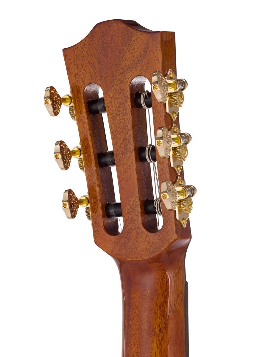 Bromo BEN2C3TS Гитара полуакустическая с нейлоновыми струнами, корпус: махагони, верхняя дека: ель с шпоном из огненного окуме класса 5A, гриф: махагони, накладка грифа: макассарский эбен, двухсторонний анкер, колки: винтажные, «Mt. Bromo» позолоченные, электроника: пьезодатчик + 3-позиционный звукосниматель под струнодержателем, глянцевый лак, цвет: 3 Tone Sunburst, в утепленном жестком кейсе