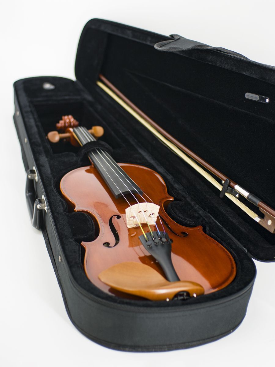 HMI HV-200CH 4/4 Скрипка Student 4/4, в кейсе, смычок, канифоль, верхняя дека - массив ели, нижняя дека, обечайки - массив клена, гриф - черное дерево, лак