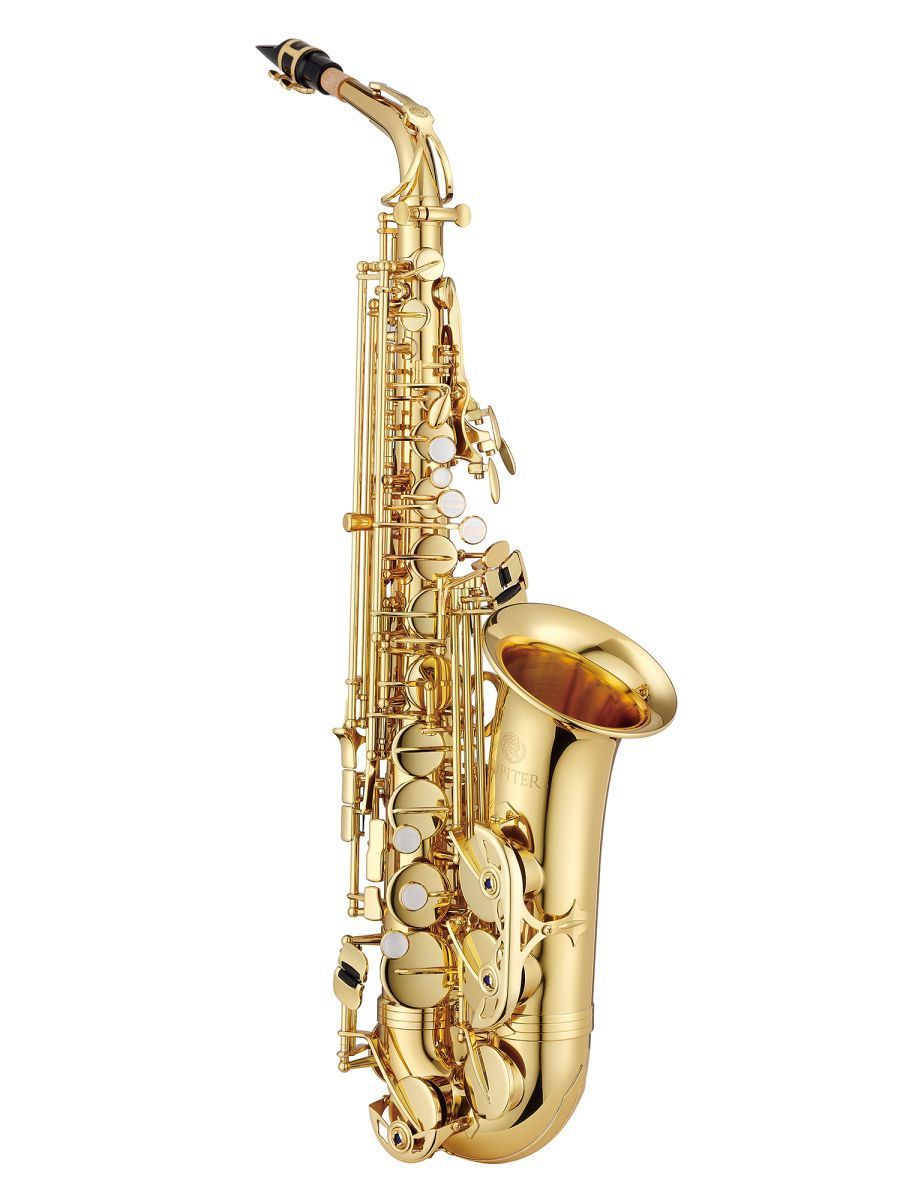 Jupiter JAS-700Q Саксофон альт Eb, клапан верхнего F#, регулируемый упор большого пальца, металлические резонаторы, покрытие корпуса и клапанов золотой лак, облегченный кейс JKC-AS55FQ
