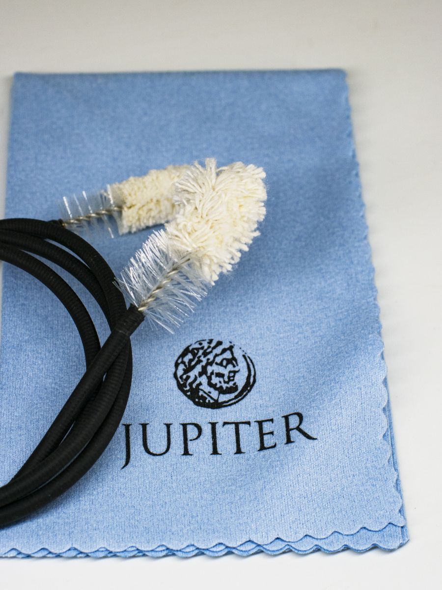 Jupiter JCM-TRK1 Набор для ухода за трубой включает: полировальную салфетку, масло для клапанов и крона, смазка для настроечного крона, ершик для мундштука, ершик для клапанов, гибкий ершик для канала ствола