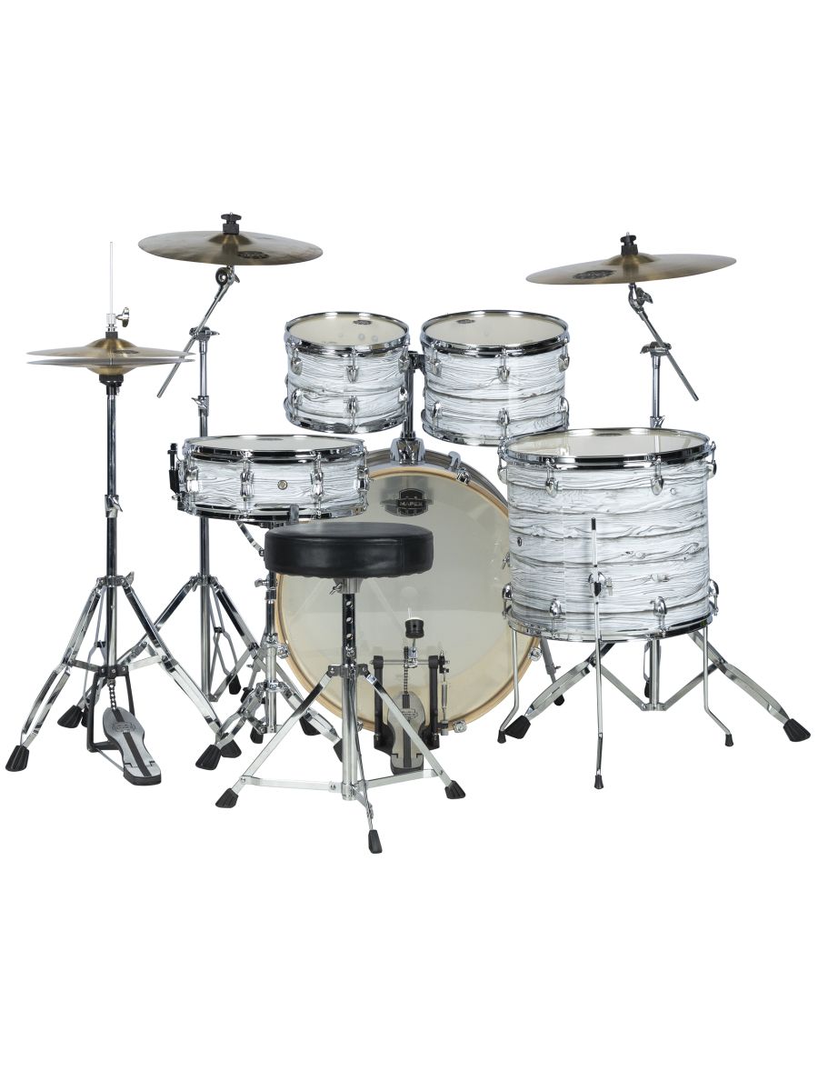 Серия: Venus Limited Edition Корпус: тополь, 9 слоев, толщина 7,2 мм Система крепления томов: SONIClear Пластики: Remo UC Фурнитура: хром Покрытие корпусов: White Marblewood