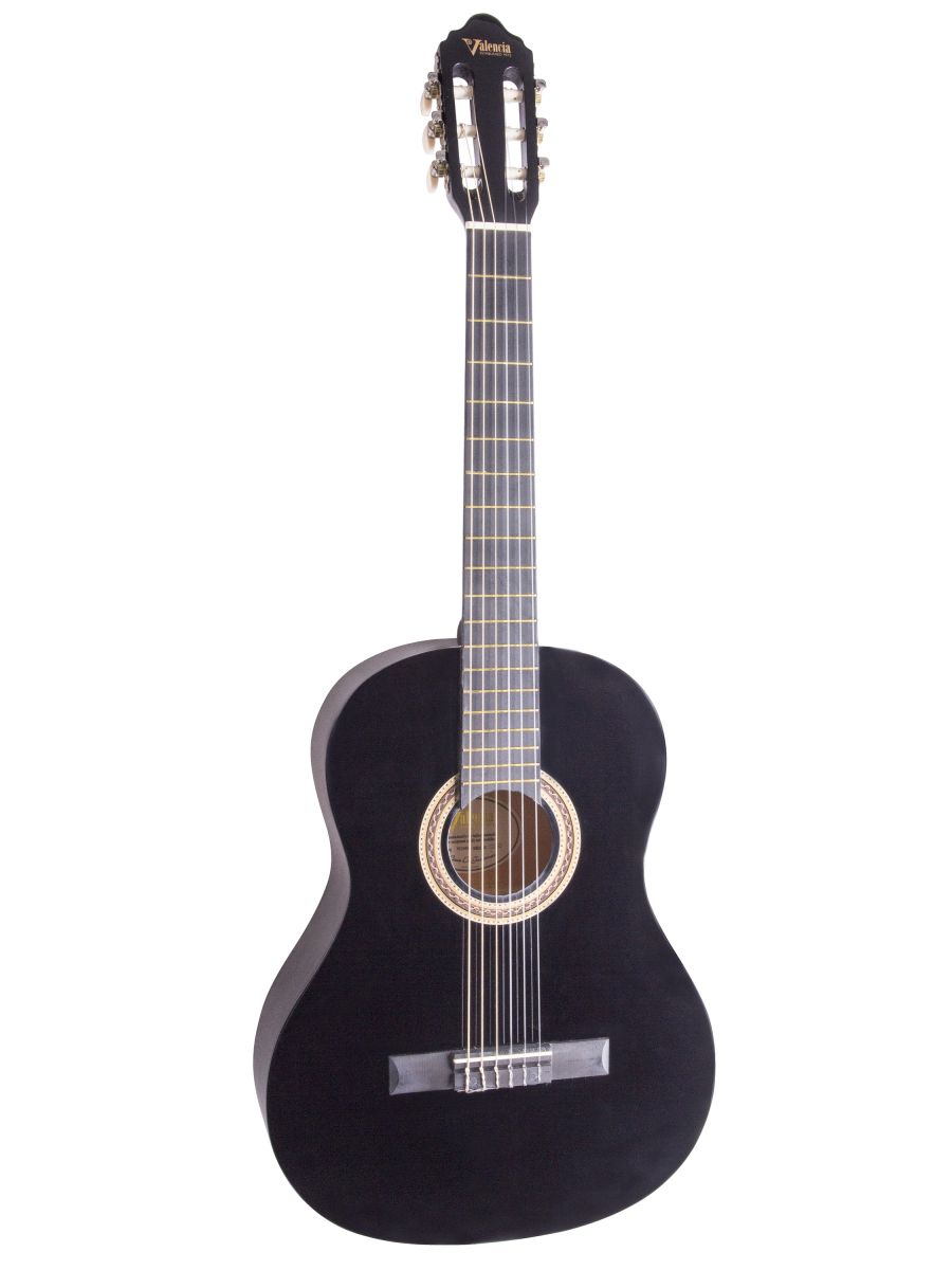 Valencia VC104BK Гитара классическая, деки и обечайка: липа, гриф: нато, накладка грифа: клен, нижний порожек: махагони, цвет Black